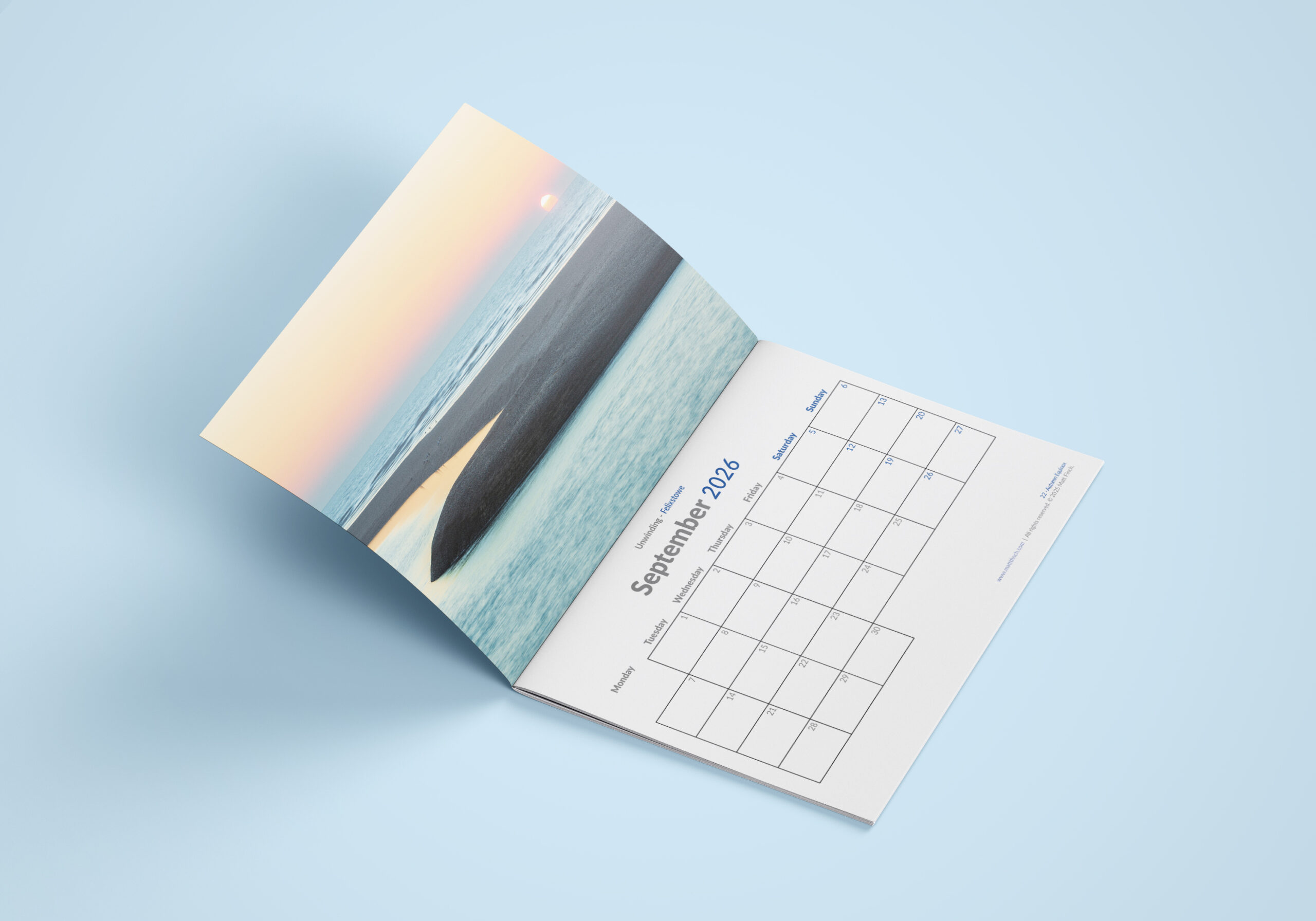 A4 booklet wall calendar. Printed 150gsm silk art paper with a 300gsm gloss artboard cover, fully carbon captured paper. 12 original photographs taken in 2024/25. A limited run of calendars with photographs from across the East.